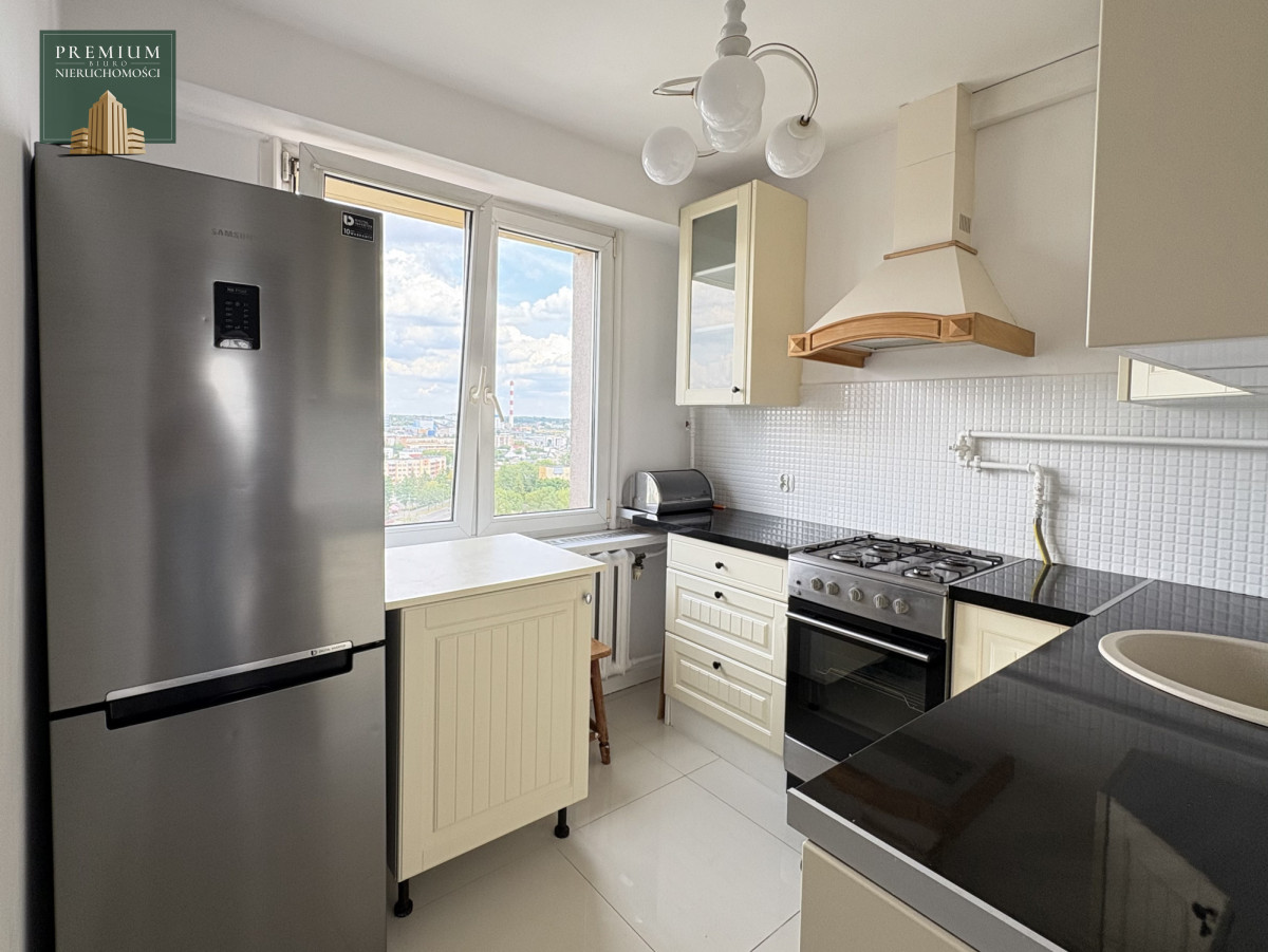 Mieszkanie znajduje się na XI piętrze budynku wyposażonego w windę, co znacząco podnosi komfort codziennego użytkowania. Sama okolica jest cicha i spokojna, zapewniając jednocześnie łatwy dostęp do centrum miasta oraz wszelkich niezbędnych usług. W bliskim sąsiedztwie znajdują się sklepy, szkoły i przystanki komunikacji miejskiej, przychodnia i apteka co czyni to miejsce idealnym do życia dla osób ceniących sobie wygodę.