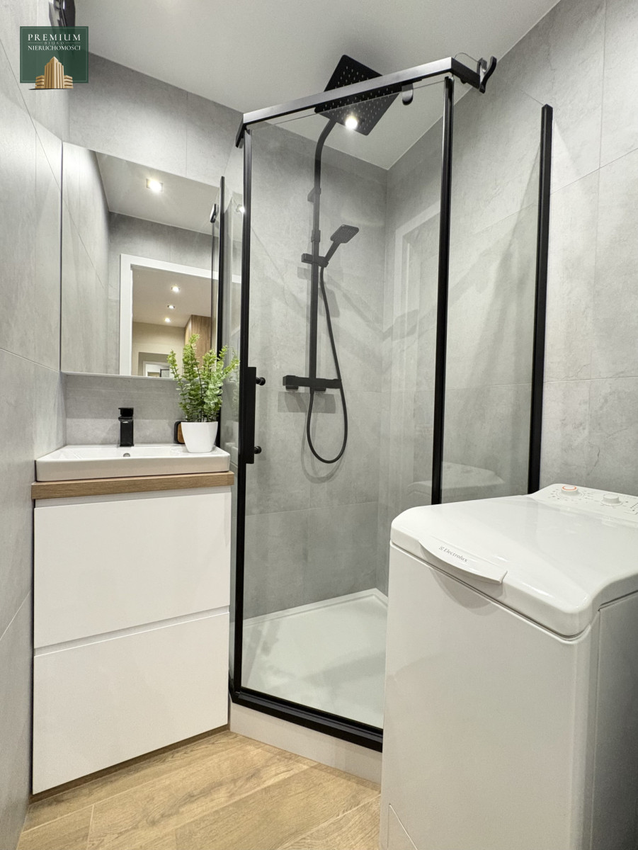 - Odzielna łazienka z dużym prysznicem i pralką